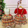 Salopete Adulto Junino – Saia com SuspensorioAtenção: esse modelo é apenas a salopete, blusa não inclusa. Confeccionado em tecido Tecnosport Plus, esse vestido oferece um caimento impecável, sofisticado e confortável, perfeito para as comemorações mais queridas do ano. Um modelo que une o clássico das festas juninas com acabamento delicado e bem estruturado. Detalhes do modelo• Tecido principal: 100% Poliéster (Tecnosport Plus)• Forro do corpo: 100% Poliéster• Forro da saia: 100% PoliésterIdeal paraFestas Juninas e Julinas, apresentações escolares, quadrilha, São João e eventos temáticos no estilo caipira. Informações Importantes As medidas podem variar em até 2cm. Recomendamos sempre consultar a tabela de medidas antes da compra para evitar erros. Tecido 100% poliester Para um volume extra, indicamos o uso de saiote de armação, vendido separadamente na categoria Acessórios. Tiara e outros acessórios não acompanham o produto, mas estão disponíveis em nosso site. Calçado vendido separadamente, disponível na categoria Calçados