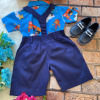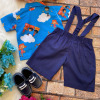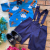 Conjunto composto por: Camisa Personagem, Shorts com suspensorio e gravata borboleta na cor Azul Royal. Demais peças ou acessórios, não inclusos.