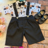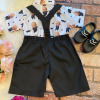 Conjunto composto por: Camisa Personagem, Shorts com suspensorio e gravata borboleta na cor Preta. Demais peças ou acessórios, não inclusos.