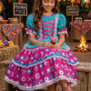 Vestido Infantil Junino  Confeccionado em tecido Tecnosport, esse vestido oferece um caimento impecável, sofisticado e confortável, perfeito para as comemorações mais queridas do ano. Um modelo que une o clássico das festas juninas com acabamento delicado e bem estruturado. Detalhes do modelo• Tecido principal: 100% Poliéster (Tecnosport Plus)• Forro do corpo: 100% Poliéster• Forro da saia: 100% PoliésterIdeal paraFestas Juninas e Julinas, apresentações escolares, quadrilha, São João e eventos temáticos no estilo caipira.     Informações Importantes  As medidas podem variar em até 2cm. Recomendamos sempre consultar a tabela de medidas antes da compra para evitar erros.  Tecido 100% poliester Para um volume extra, indicamos o uso de saiote de armação, vendido separadamente na categoria Acessórios. Tiara e outros acessórios não acompanham o produto, mas estão disponíveis em nosso site. Calçado vendido separadamente, disponível na categoria Calçados