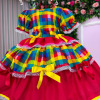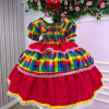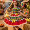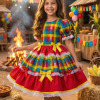 Vestido Infantil Junino  Confeccionado em tecido Tecnosport, esse vestido oferece um caimento impecável, sofisticado e confortável, perfeito para as comemorações mais queridas do ano. Um modelo que une o clássico das festas juninas com acabamento delicado e bem estruturado. Detalhes do modelo• Tecido principal: 100% Poliéster (Tecnosport Plus)• Forro do corpo: 100% Poliéster• Forro da saia: 100% PoliésterIdeal paraFestas Juninas e Julinas, apresentações escolares, quadrilha, São João e eventos temáticos no estilo caipira.     Informações Importantes  As medidas podem variar em até 2cm. Recomendamos sempre consultar a tabela de medidas antes da compra para evitar erros.  Tecido 100% poliester Para um volume extra, indicamos o uso de saiote de armação, vendido separadamente na categoria Acessórios. Tiara e outros acessórios não acompanham o produto, mas estão disponíveis em nosso site. Calçado vendido separadamente, disponível na categoria Calçados