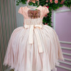 Confeccionado em tecido misto possui forro em poliéster e algodão para não machucar a criança e proporcionando um caimento incrível e sofisticado, possui gola redonda, comprimento médio, mangas curtas, possui elástico nas costas para melhor ajuste, acabamento com lindo laço na parte posterior do vestido completa o look dos sonhos! * Medidas podem variar em até 4cm * Caso queira o vestido mais armado, recomendamos o uso do saiote ou anágua de armação, disponível no nosso site na categoria acessórios. * Tiara vendida separadamente, disponível em nosso site na categoria acessórios.