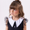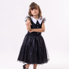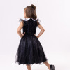 Halloween Infantil – Estilo e Diversão Assustadoramente Lindos! Este modelo faz parte da nossa linha temática Halloween, trazendo o charme da Vandinha em uma versão fofa e fashionista para as pequenas.  O vestido é confeccionado em preto clássico com gola branca e botões frontais, além de mangas de tule levemente bufantes que dão volume e delicadeza ao visual. A saia em tule com brilho suave completa o look com movimento e um toque mágico.   Perfeito para: festas de Halloween, aniversários temáticos, eventos escolares e até ensaios fotográficos que pedem um ar divertido e misterioso.  Informações Importantes As medidas podem variar em até 2cm. Recomendamos sempre consultar a tabela de medidas antes da compra para evitar erros. Cuidado ao vestir: não forçar a entrada ou puxar o tecido, pois pode esgarçar a costura ➝ Não realizaremos troca por mau uso. Tiara e outros acessórios não acompanham o produto, mas estão disponíveis em nosso site. Calçado vendido separadamente, disponível na categoria Calçados. As cores do produto podem sofrer variações de tonalidade conforme a configuração da tela do seu dispositivo.
