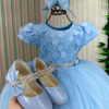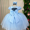 Tecido Tafeta: interno 100% poliester/ externo 100% poliamida/ tule 100% algodão  Confeccionado em tecido misto possui forro em poliéster e algodão para não incomodar a criança e proporcionando um caimento incrível e sofisticado, possui gola redonda, comprimento médio, mangas curtas, possui elástico nas costas para melhor ajuste, acabamento com lindo laço na parte posterior do vestido completa o look dos sonhos!   * Medidas podem variar em até 4cm * Caso queira o vestido mais armado, recomendamos o uso do saiote ou anágua de armação, disponível no nosso site na categoria acessórios. * Tiara vendida separadamente, disponível em nosso site na categoria acessórios. * Calçados vendido separadamente, disponível em nosso site na categoria calçados. * LEMBRANDO QUE PODERA HAVER VARIAÇÃO DE TONALIDADE DO PRODUTO DEPENDENDO DA TELA DO SEU DISPOSITIVO