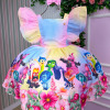 Confeccionado em tecido misto possui forro em poliéster e algodão para não machucar a criança e proporcionando um caimento incrível e sofisticado, possui gola redonda, comprimento médio, mangas curtas, possui elástico nas costas para melhor ajuste, acabamento com lindo laço na parte posterior do vestido completa o look dos sonhos! DIVERTIDAMENTE, COLORIDO, ARCO IRIS. ACOMPANHA LAÇO DE CABELO. * Medidas podem variar em até 4cm * Caso queira o vestido mais armado, recomendamos o uso do saiote ou anágua de armação, disponível no nosso site na categoria acessórios.*Calçados Vendidos Separadamente , disponível em nosso site na categoria calçados.